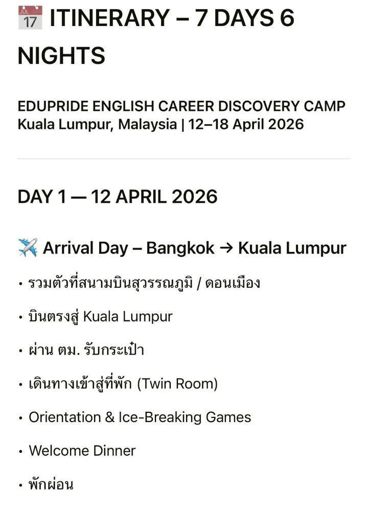 • ค่ายภาษา ปิดเทอม เมษายน 2569